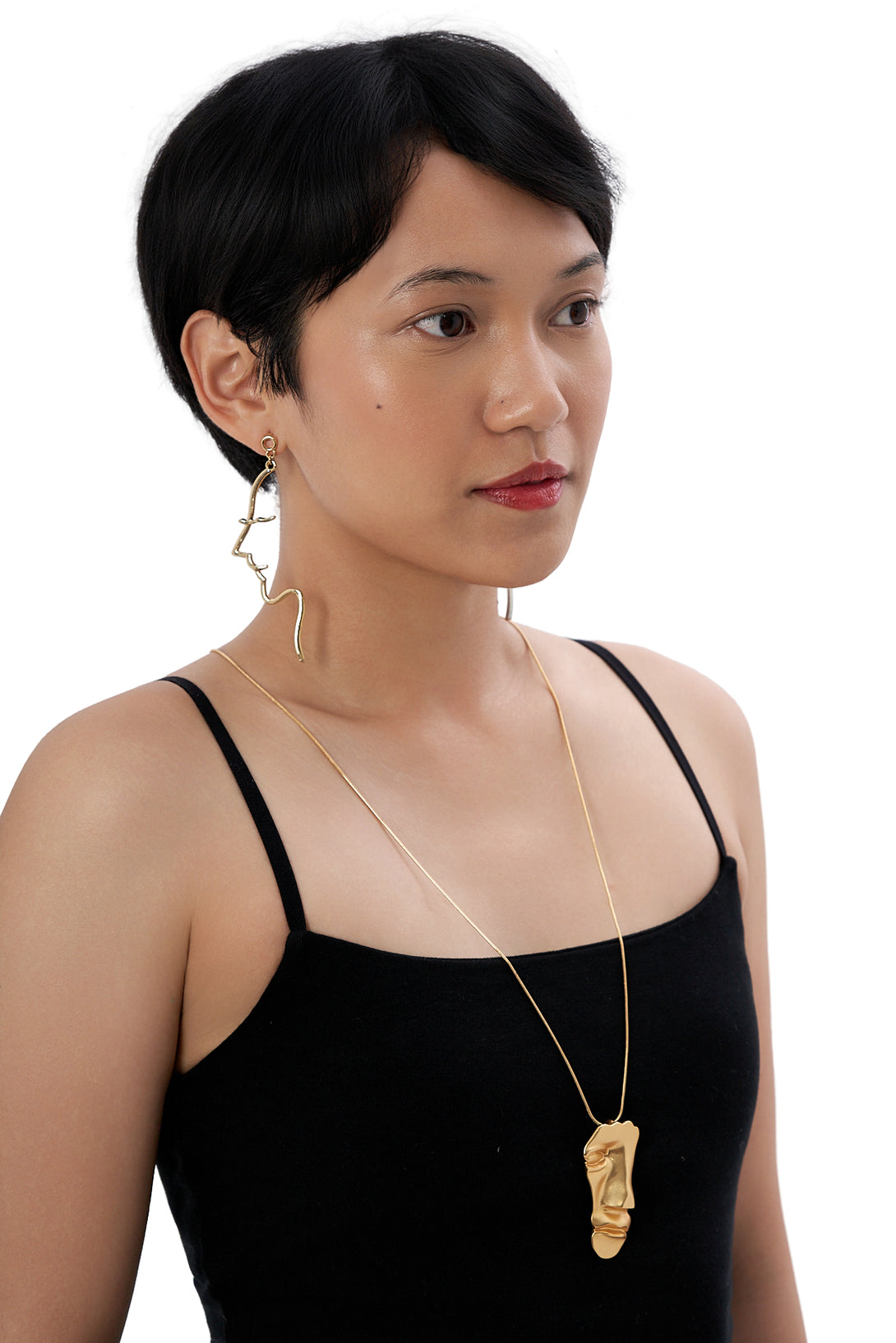 - Bold, statement drop earrings in a sleek, abstract face outline design