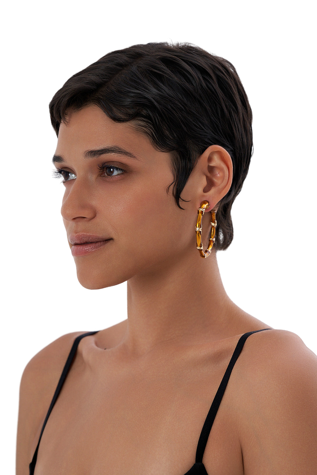 - Statement hoop earrings inspired by natural bamboo textures