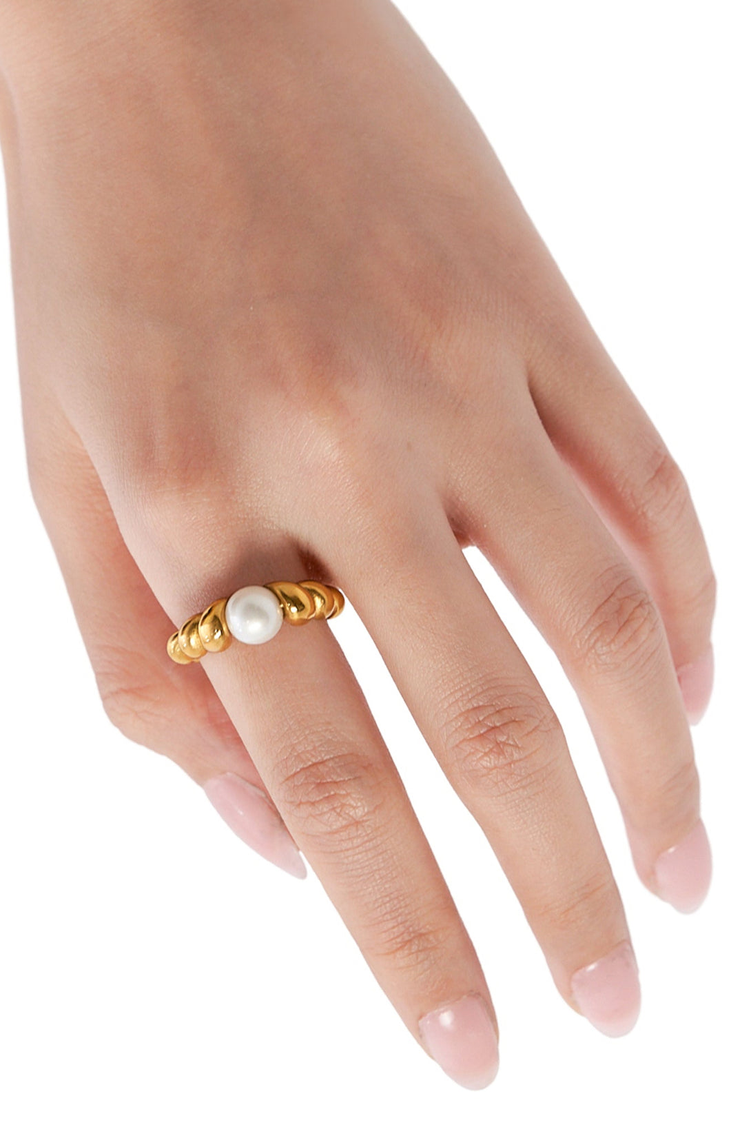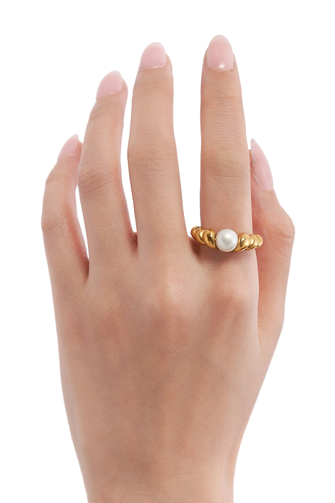 - A modern classic with a playful edge. This ring features a luminous faux pearl cradled by an 18k gold-plated twisted rope band