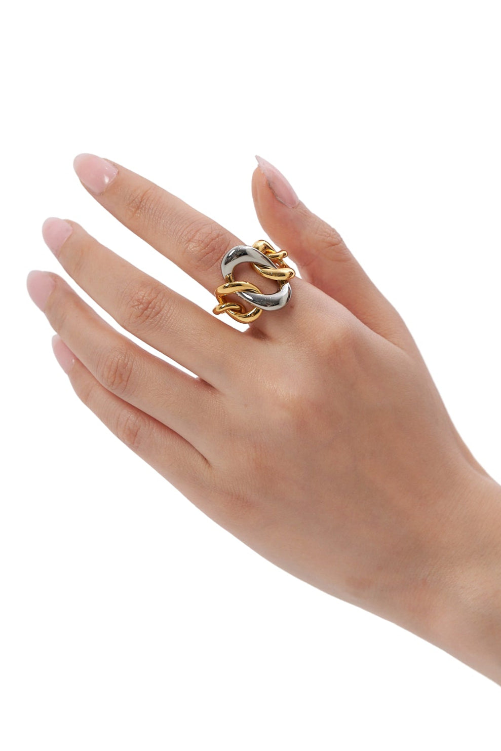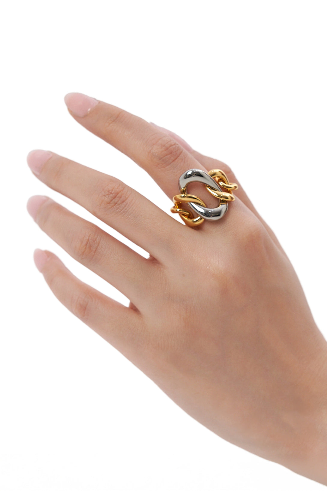- Striking contrast of metals creates a funky, high-fashion vibe