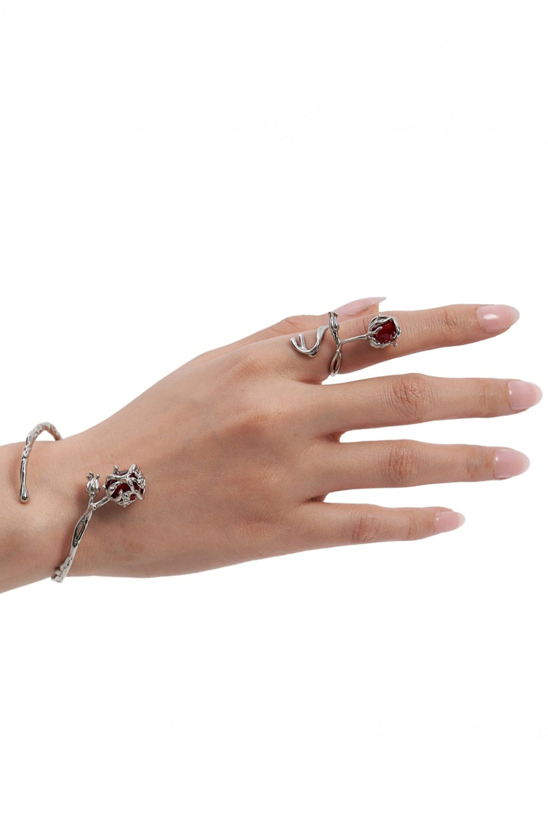 Wine-Red/ Ocean-Blue Crystal Rose Ring & Bracelet