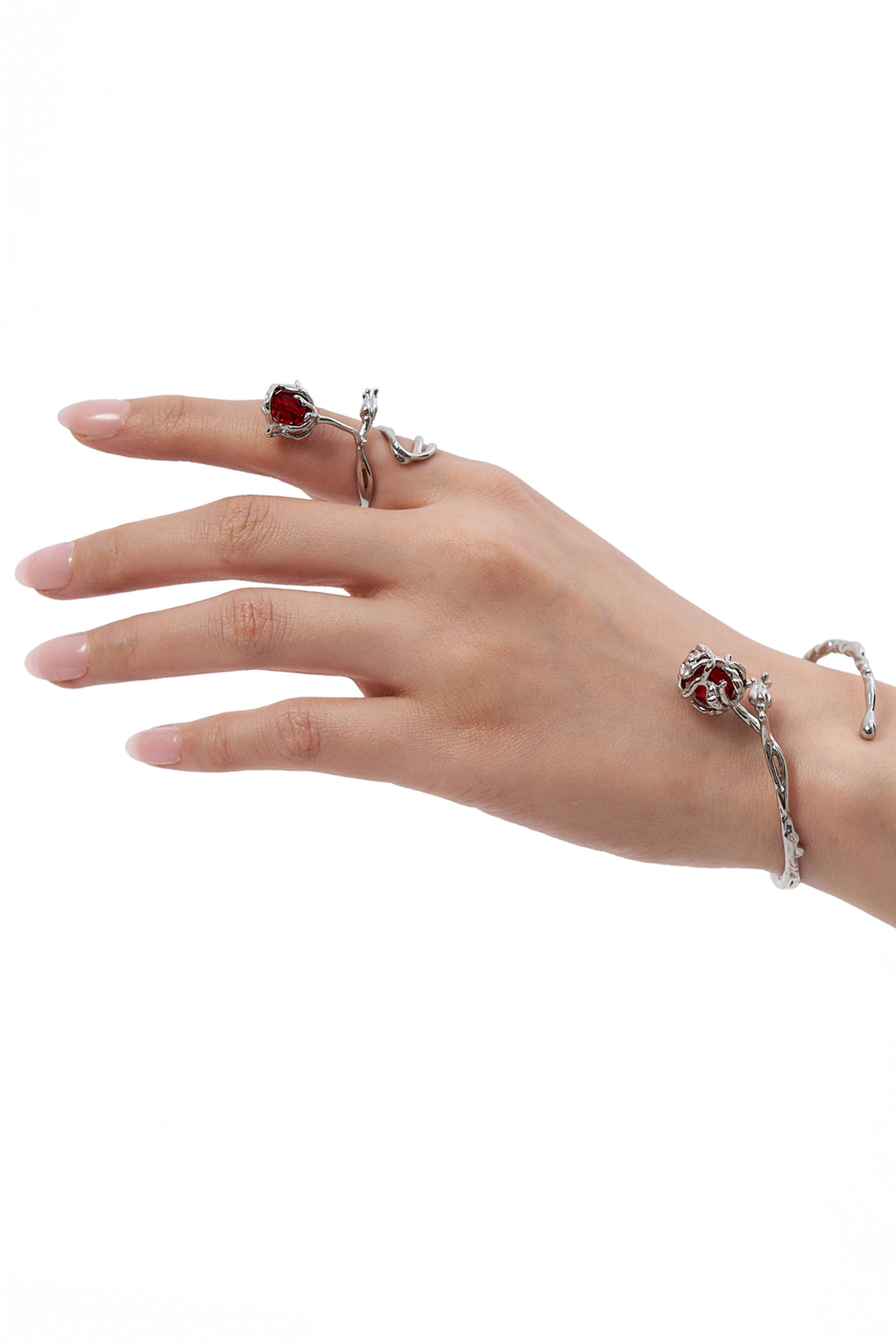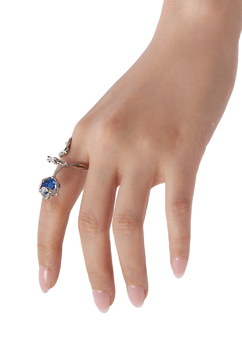 - Delicately sculpted rose design with a wine-red/ ocean-blue crystal stone