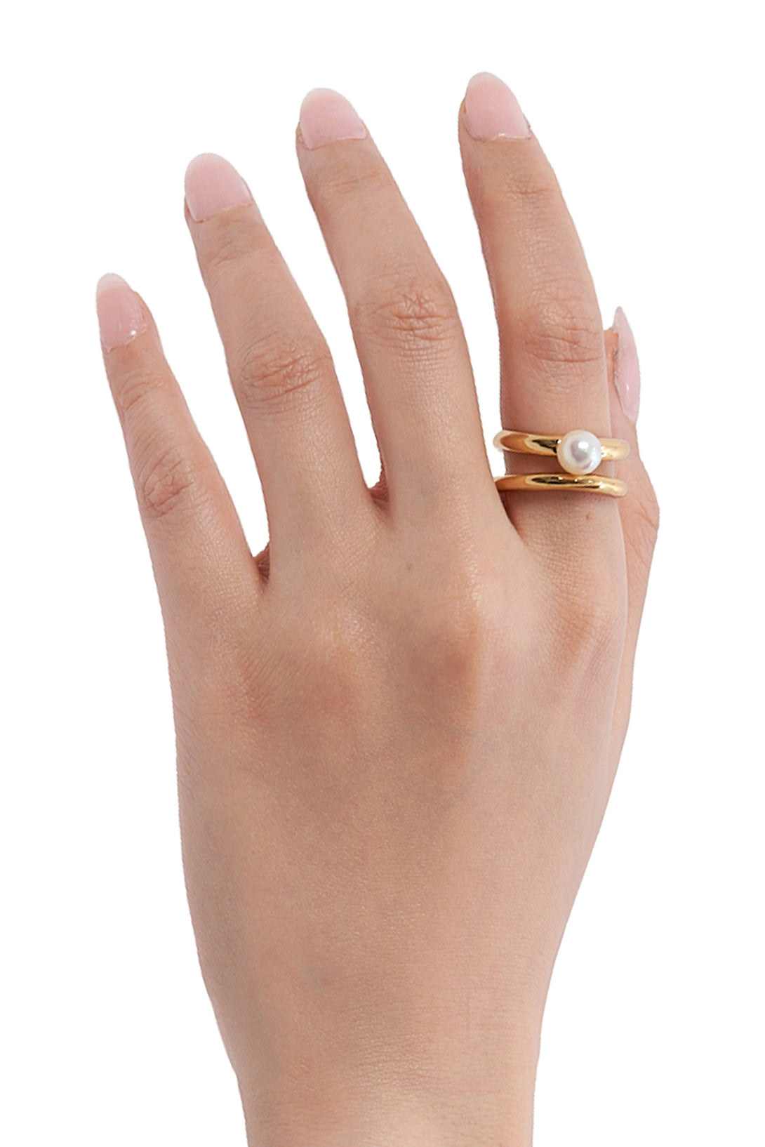 - A graceful double-band design with a luminous pearl centerpiece that embodies quiet elegance