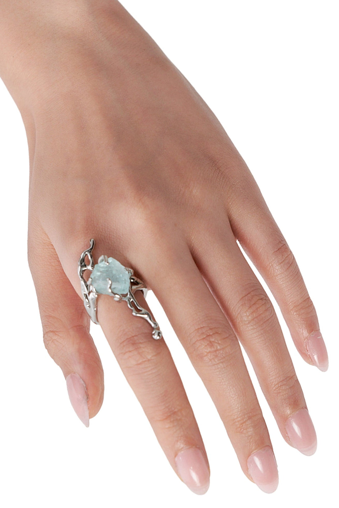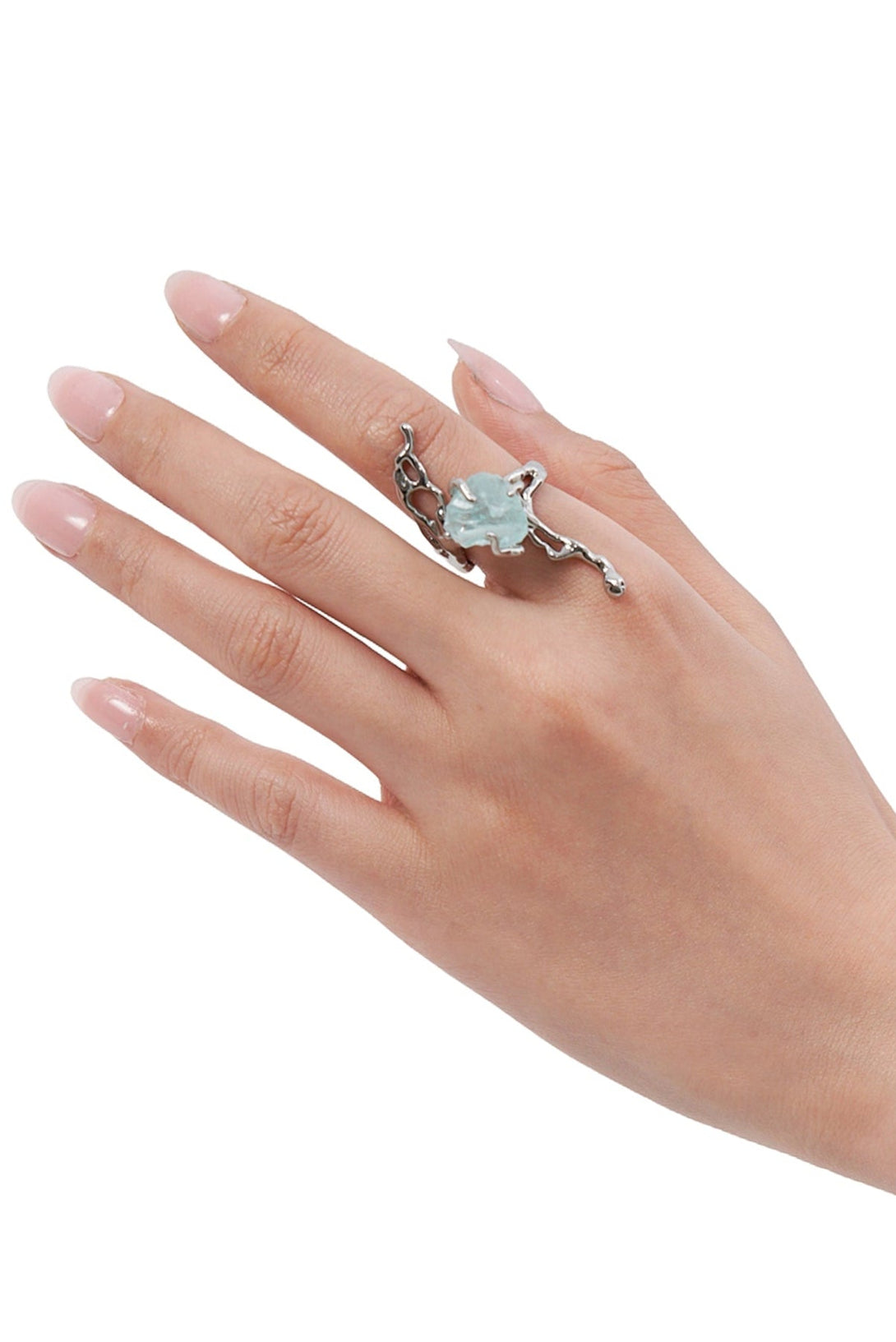 - Raw-cut ice-blue transparent stone — jagged, untamed, and impossible to ignore