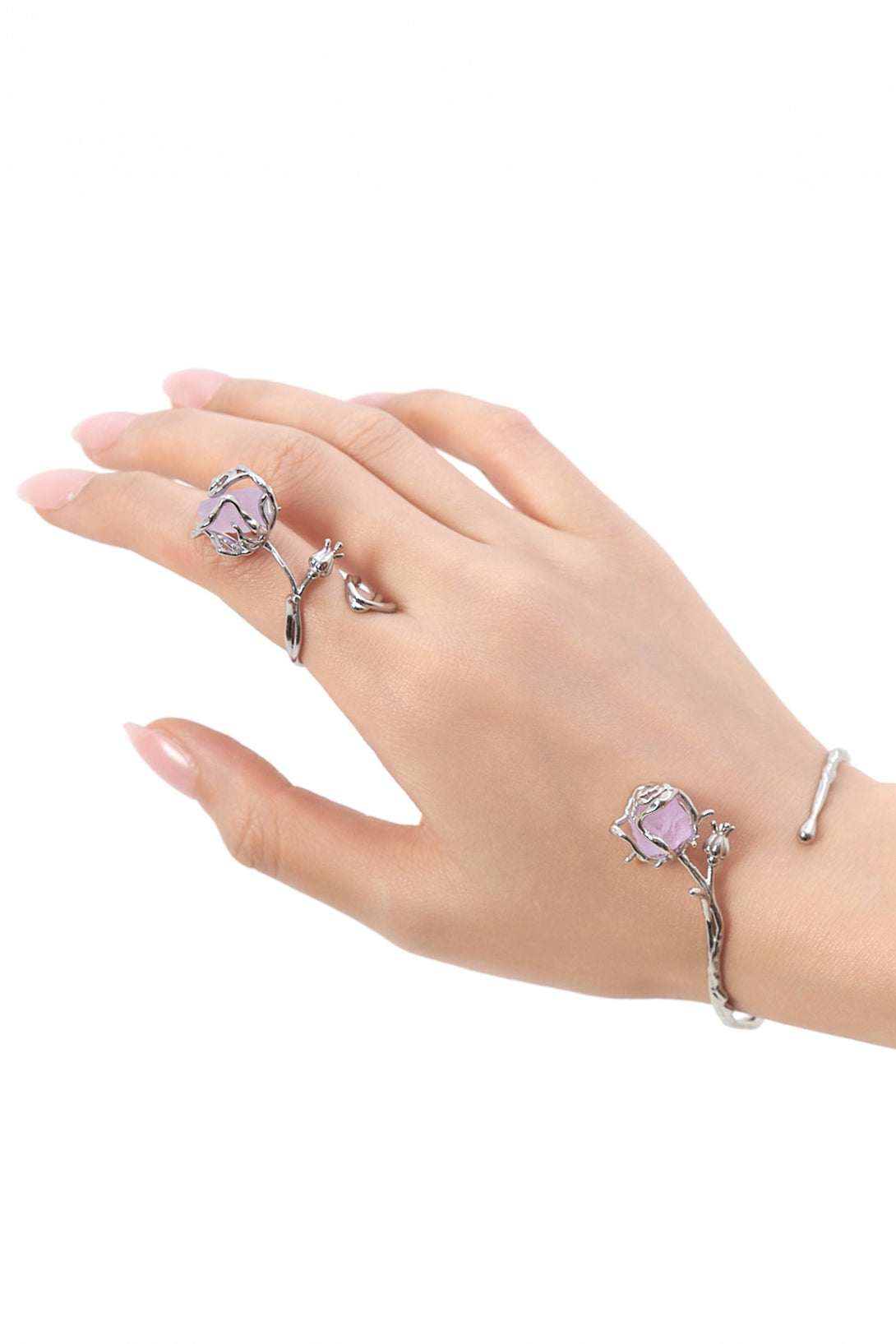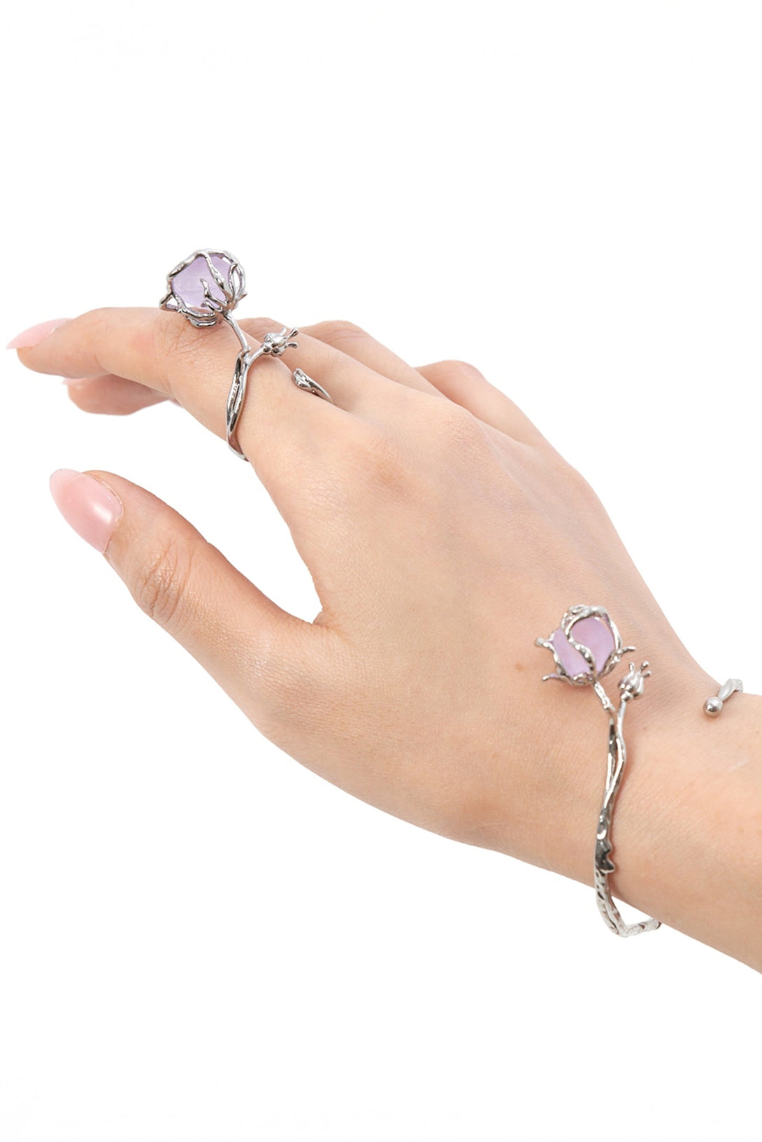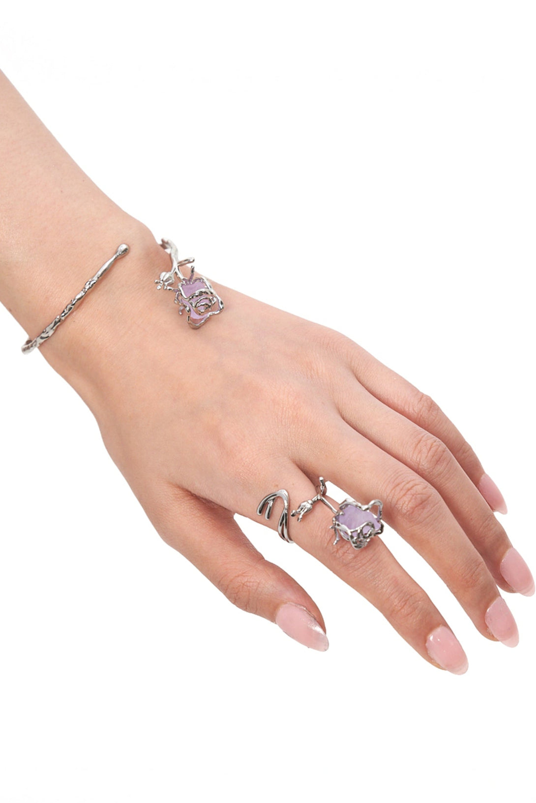 Materials: Silver-plated + Raw-cut transparent lilac stones