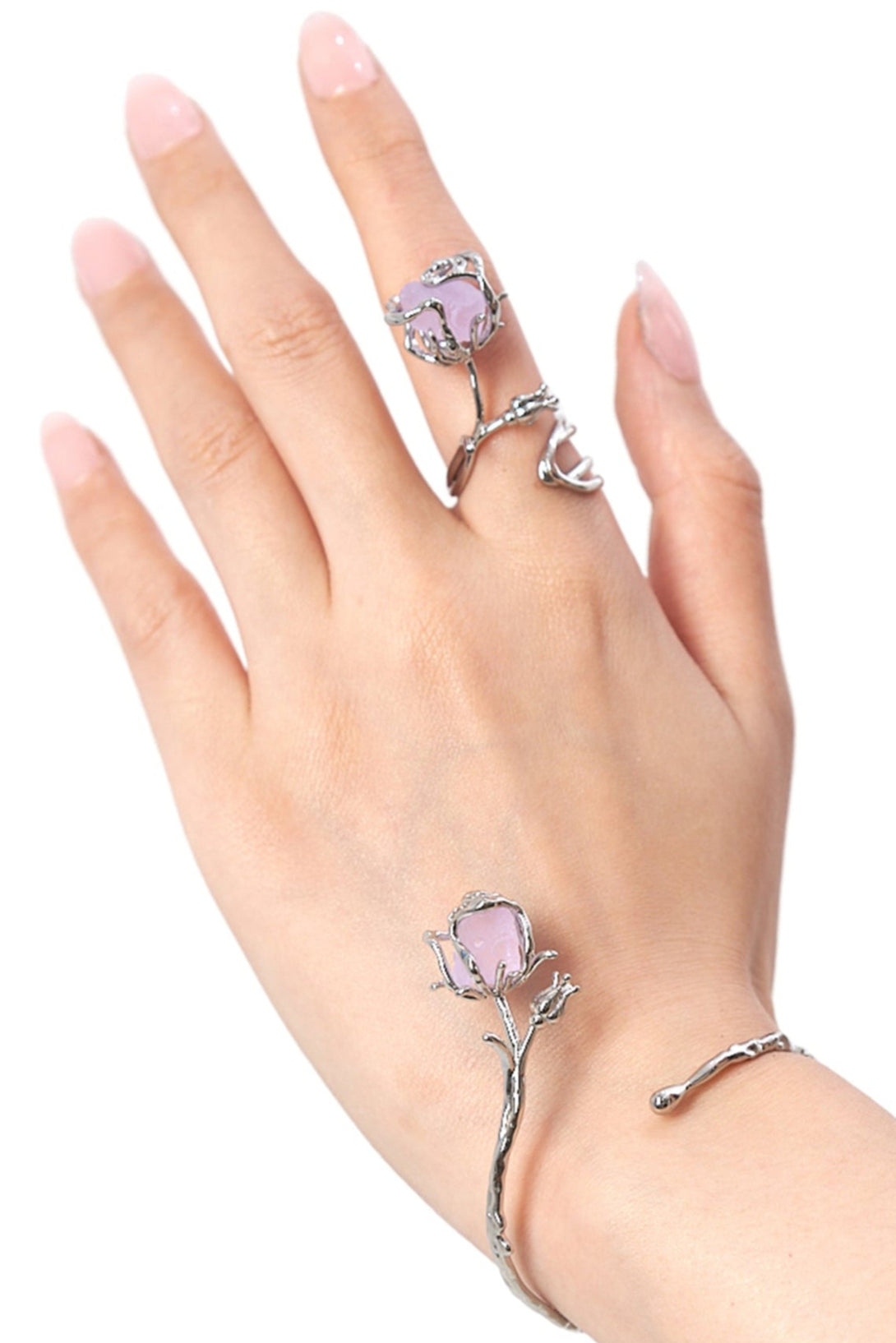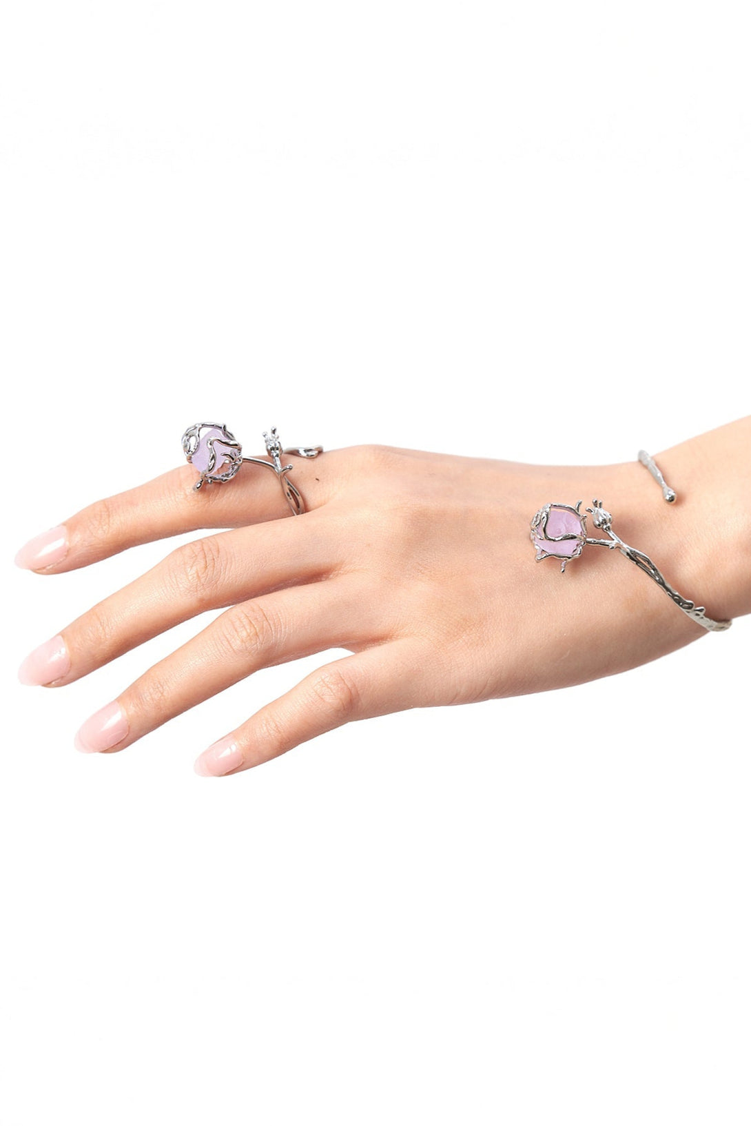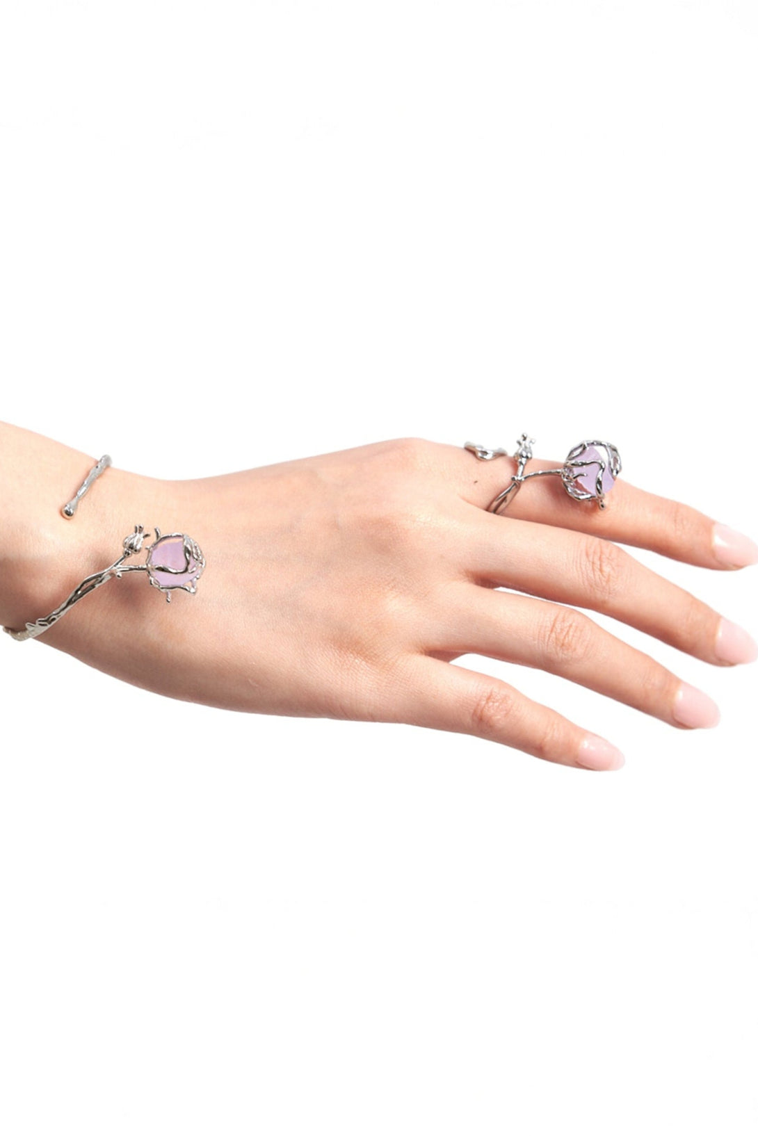 Materials: Silver-plated + Raw-cut transparent lilac stones