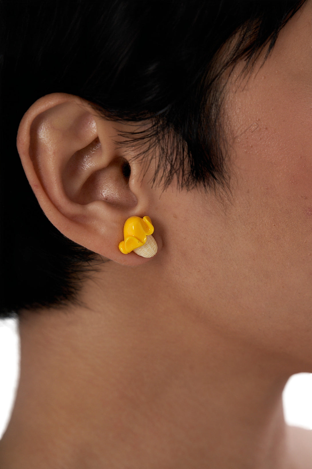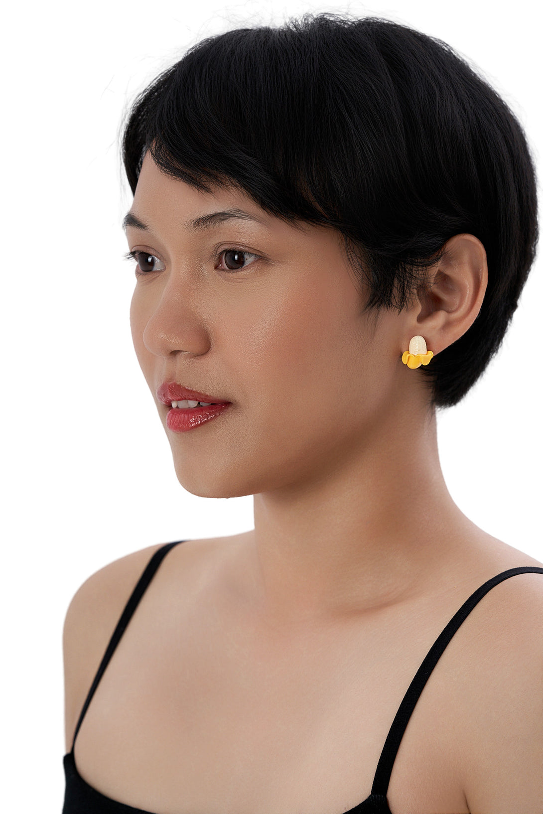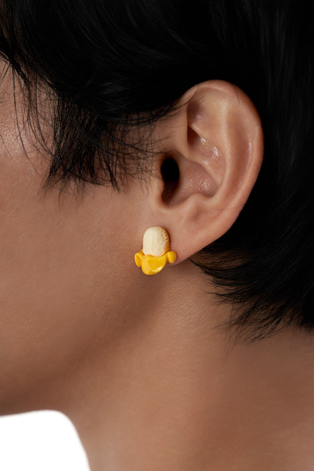 - Playful banana design with peeled detailing in glossy yellow enamel
