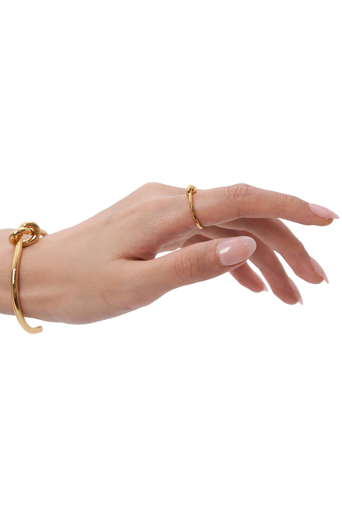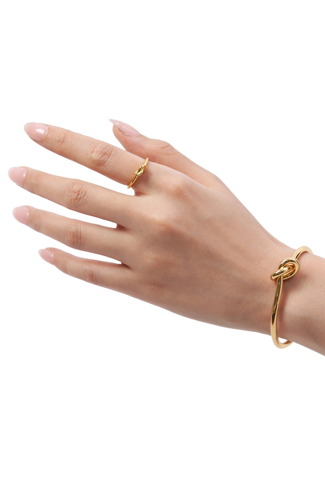 - Minimalist 18k gold-plated ring featuring a sleek knot detail at the center