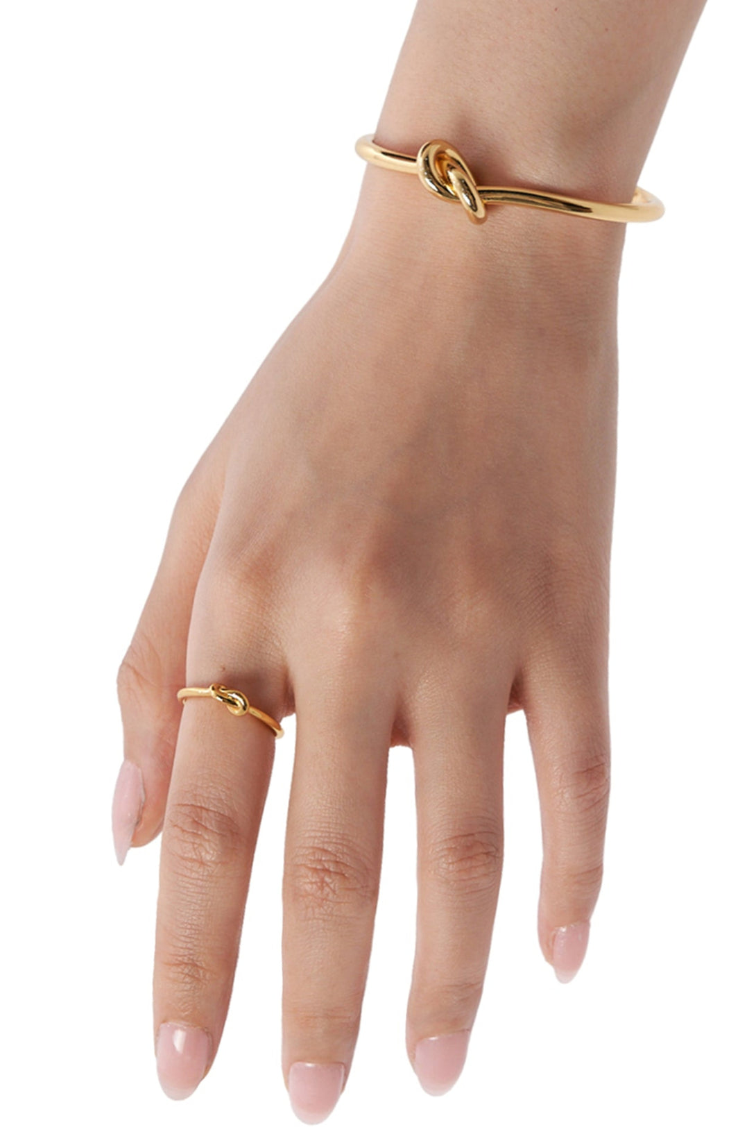 - Matching 18k gold-plated bracelet with a bold central knot design