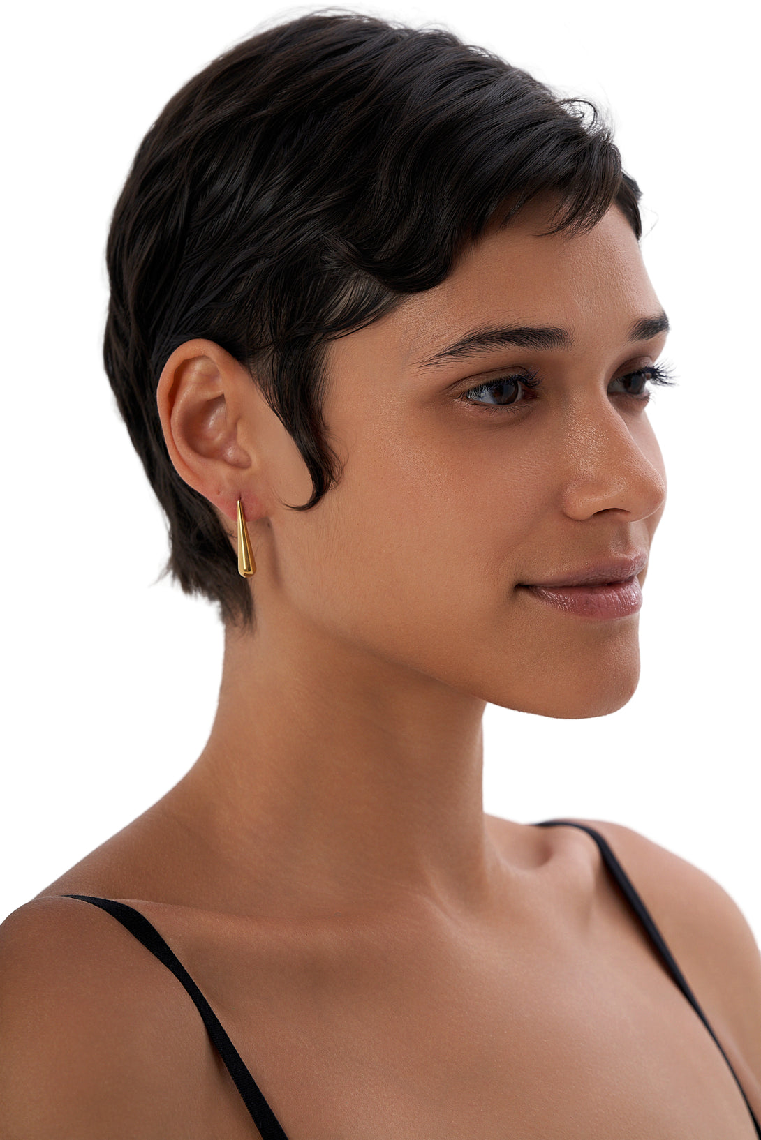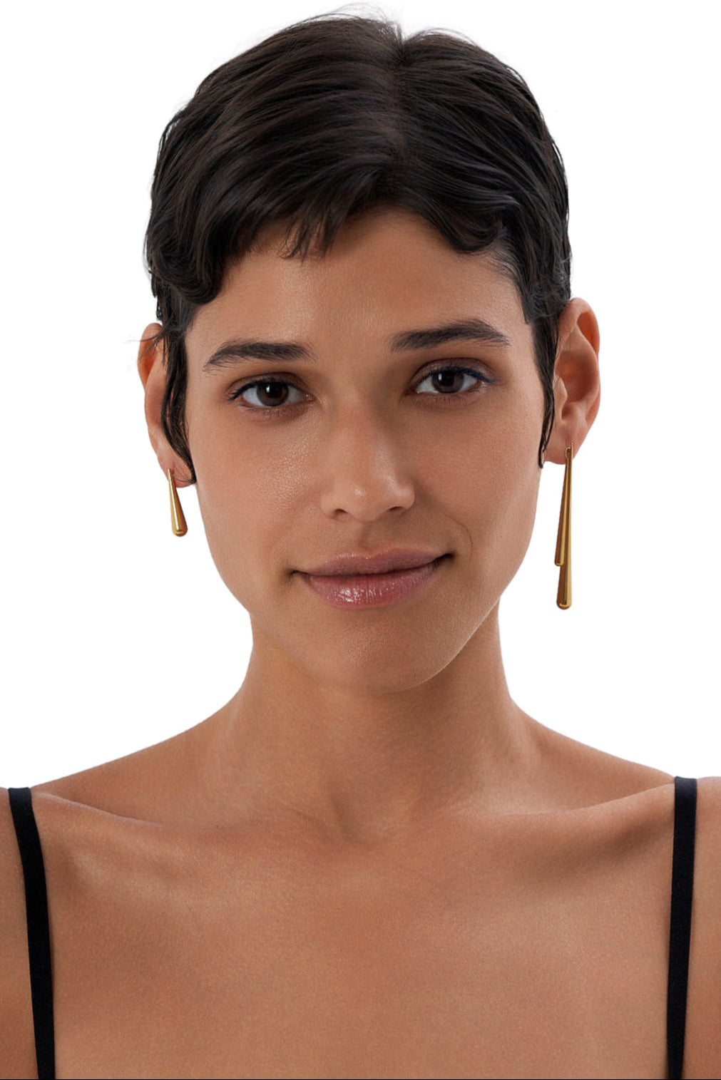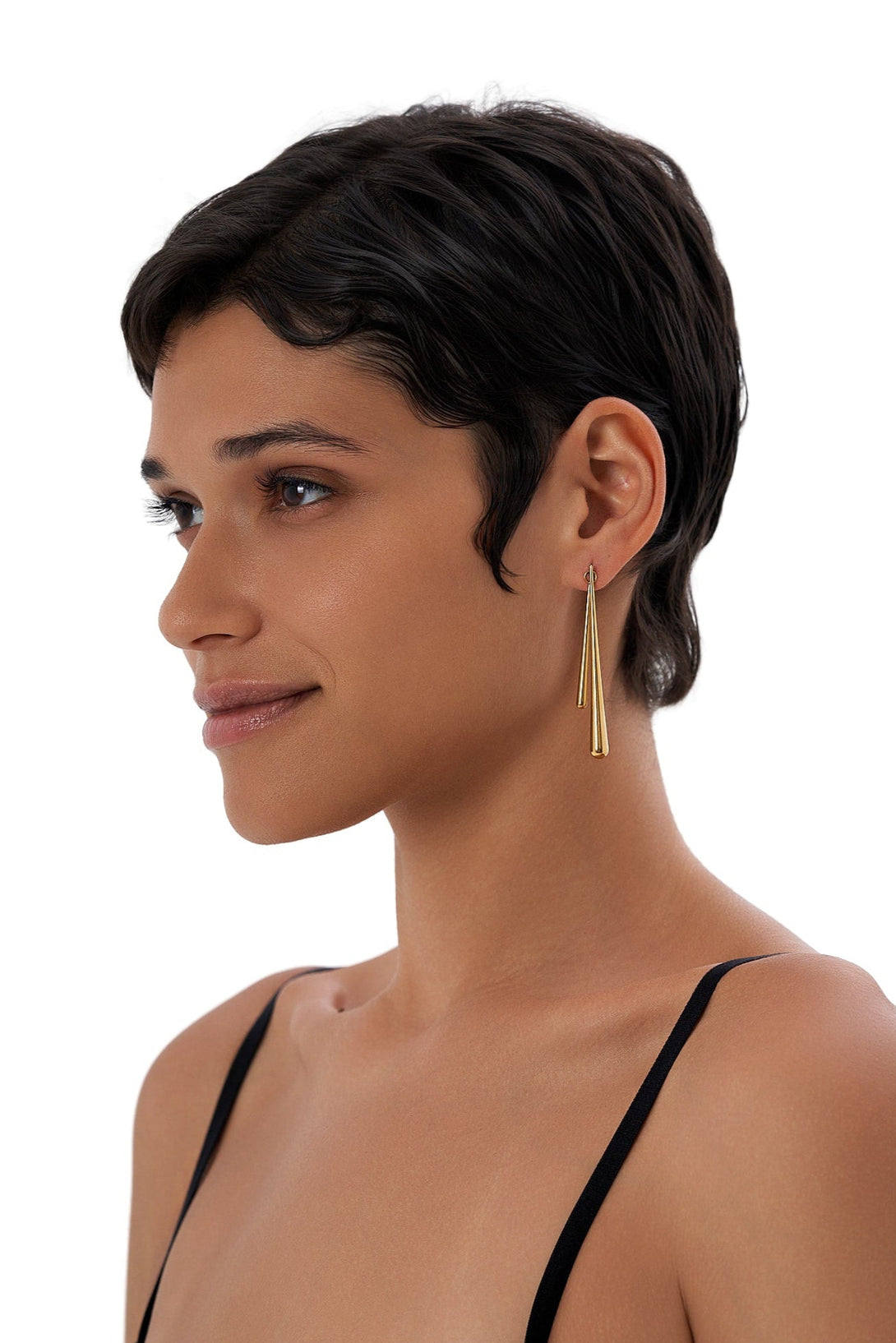 - Sleek, asymmetric drop earrings with a modern, architectural edge