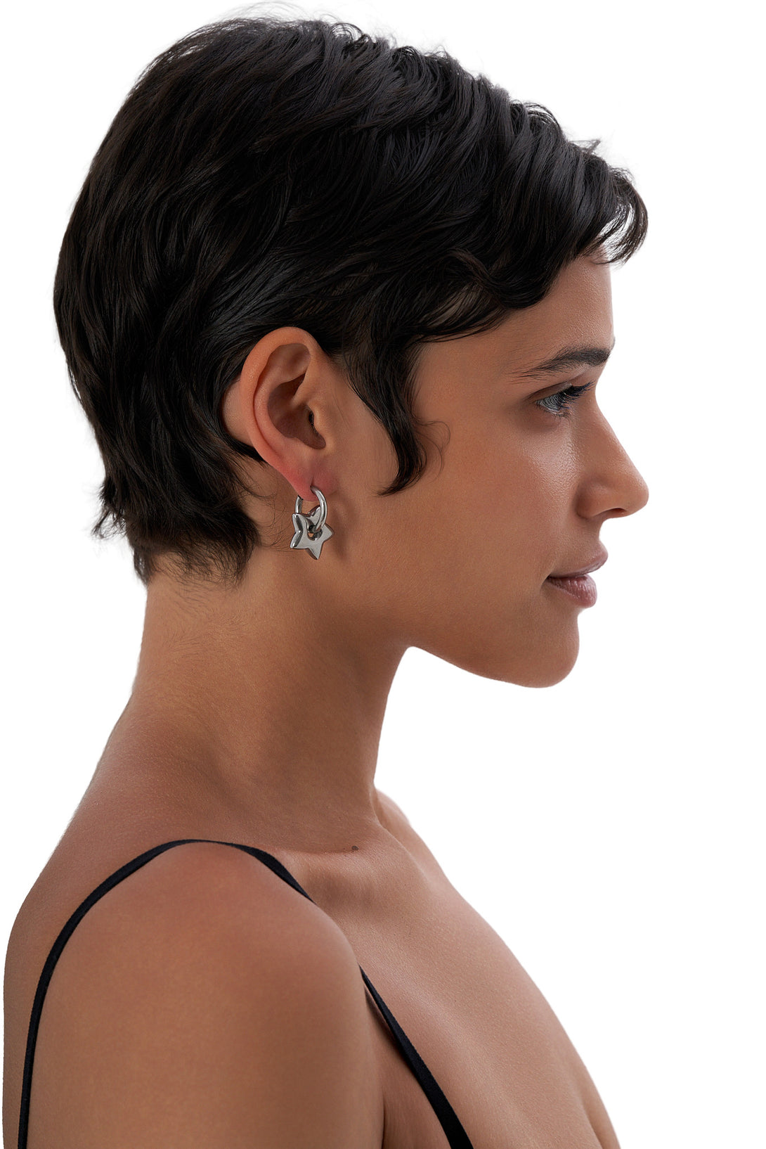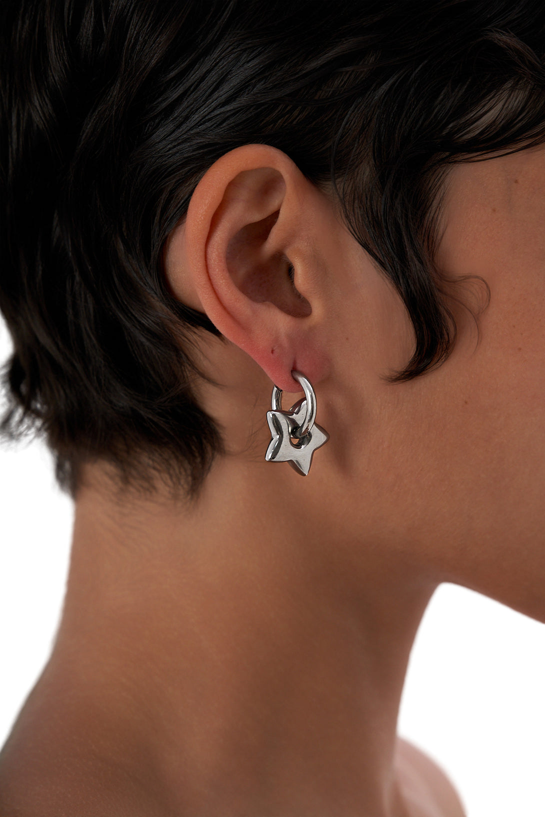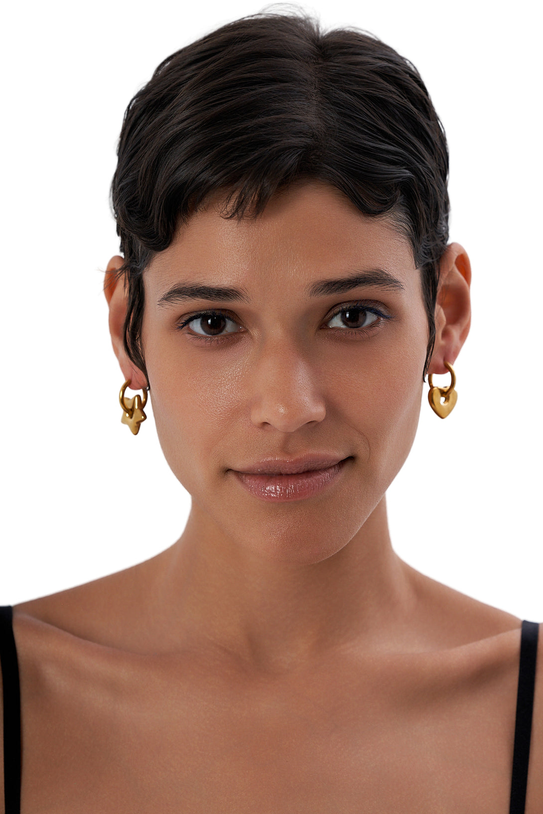 - Mismatched gold-tone/silver-tone earrings featuring abstract heart and star