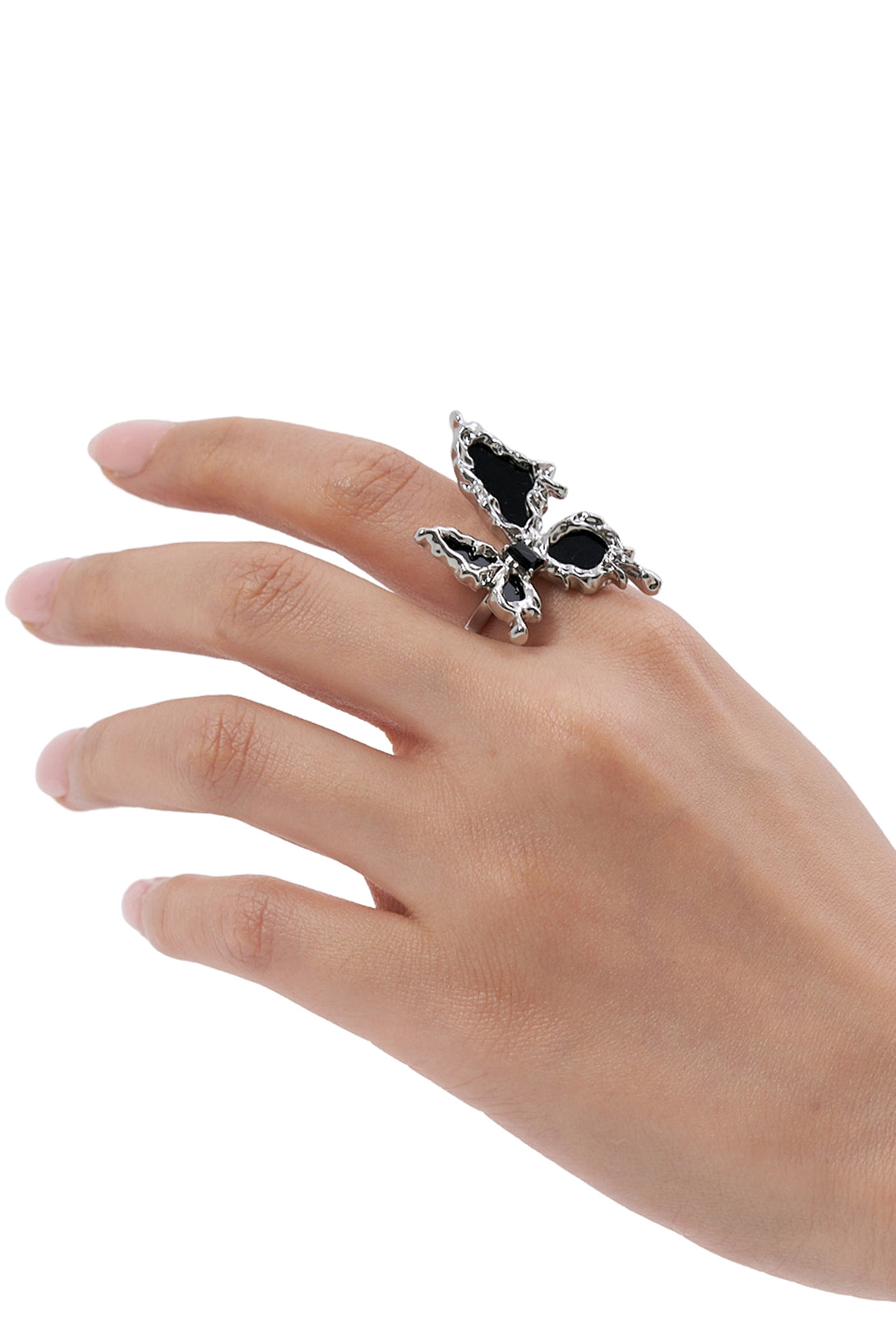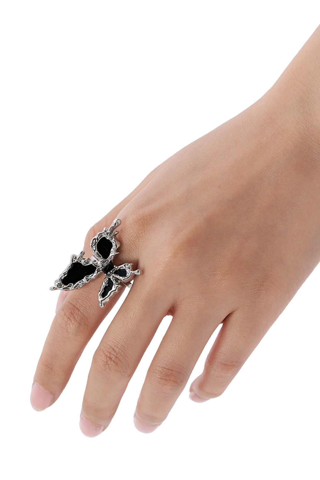 - Statement butterfly ring in a bold silver-tone finish