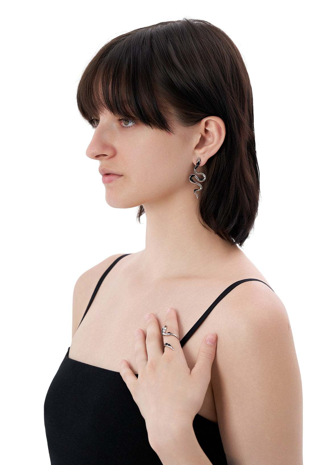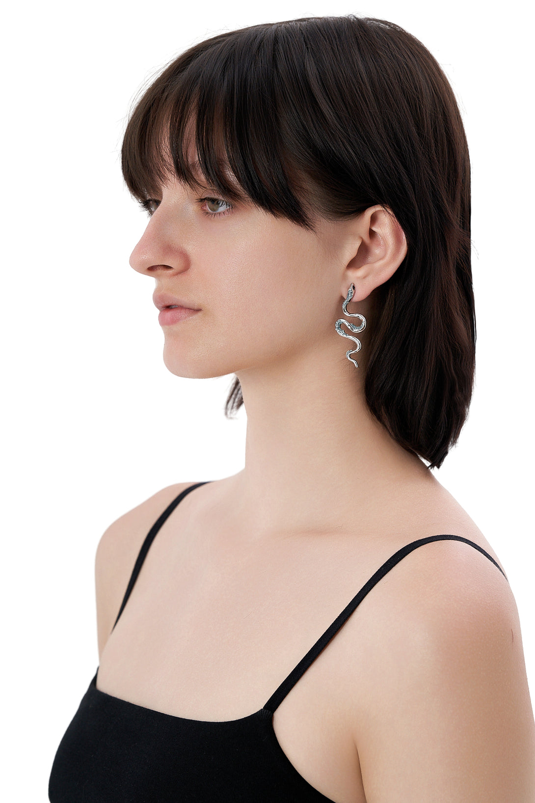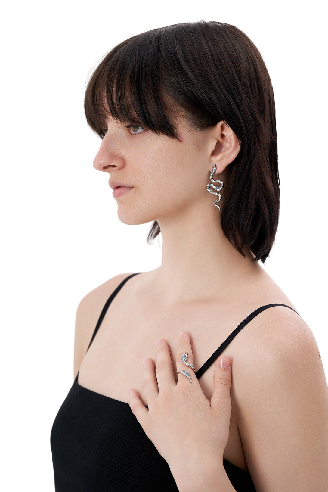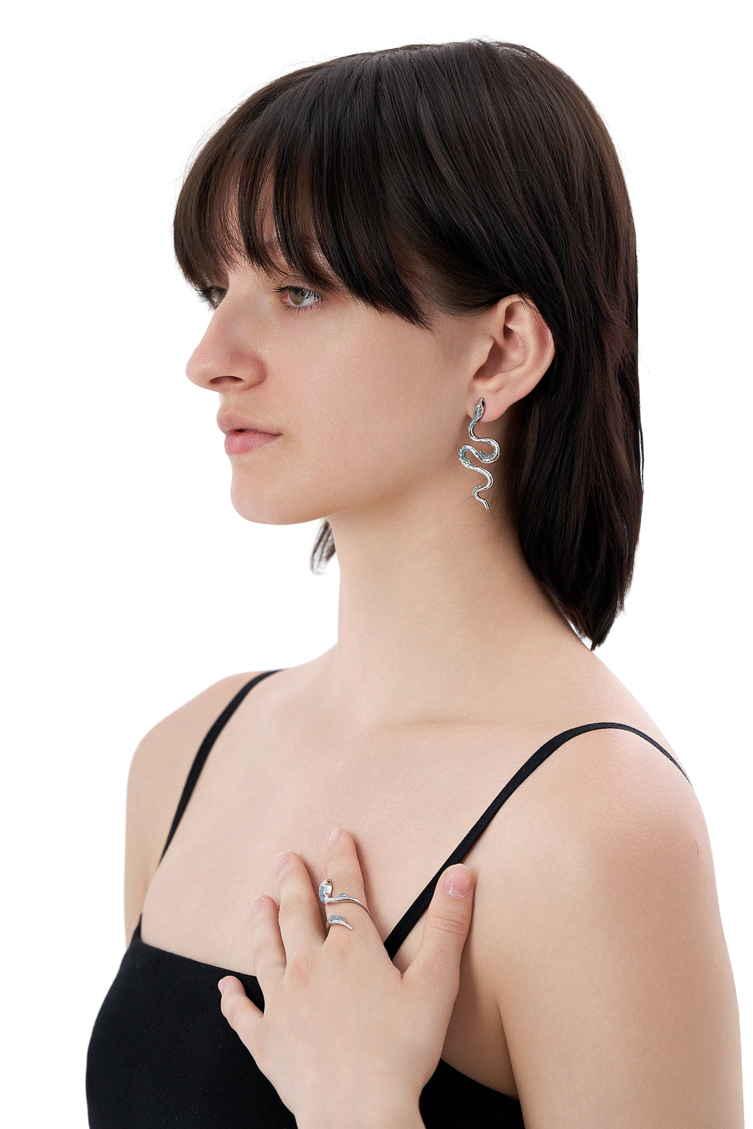 - Two-tone design featuring ghost black/ice blue and silver snake forms