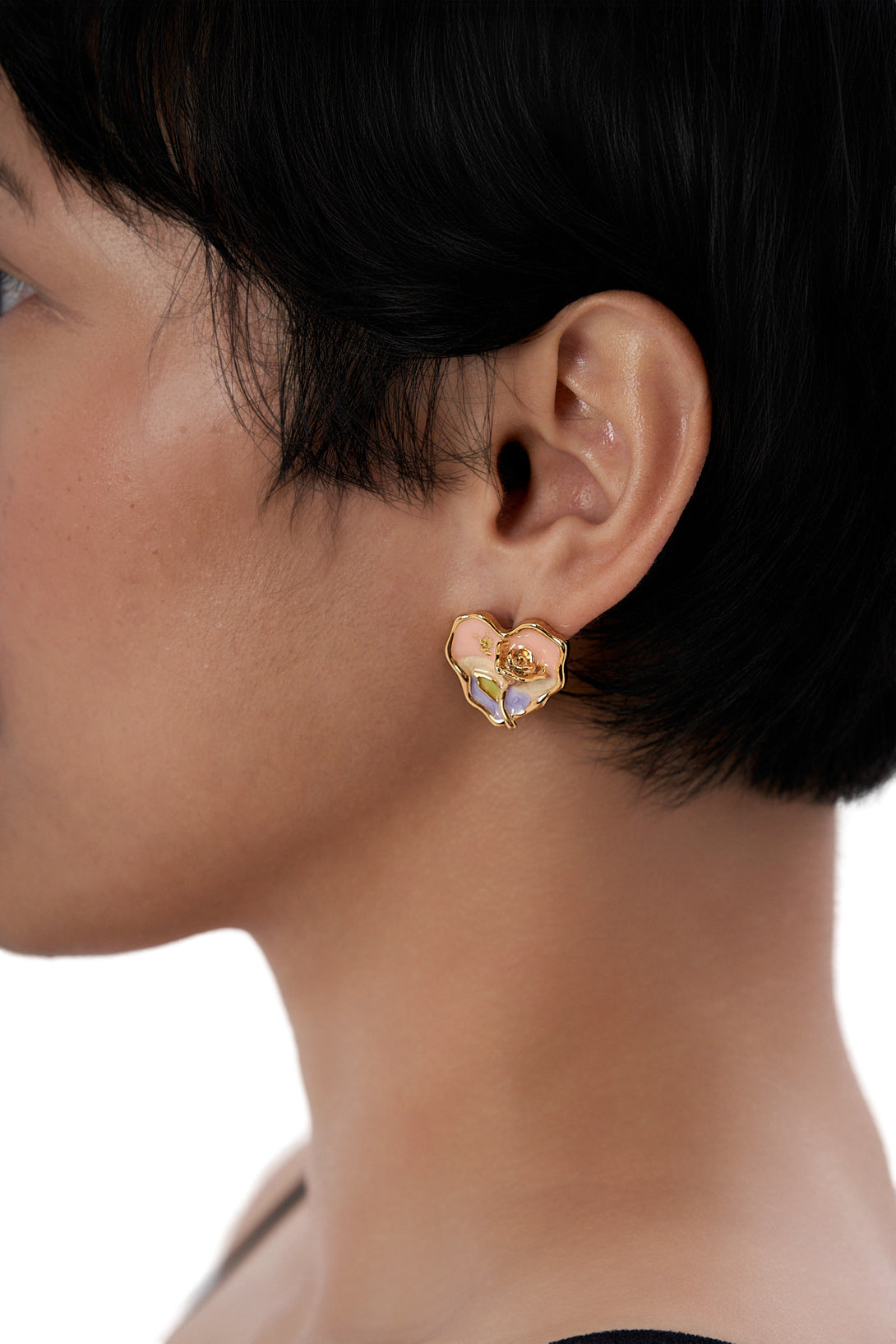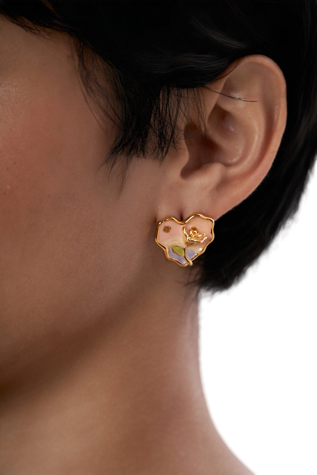 - Softly sculpted heart-shaped studs inspired by Monet’s pastel sunsets